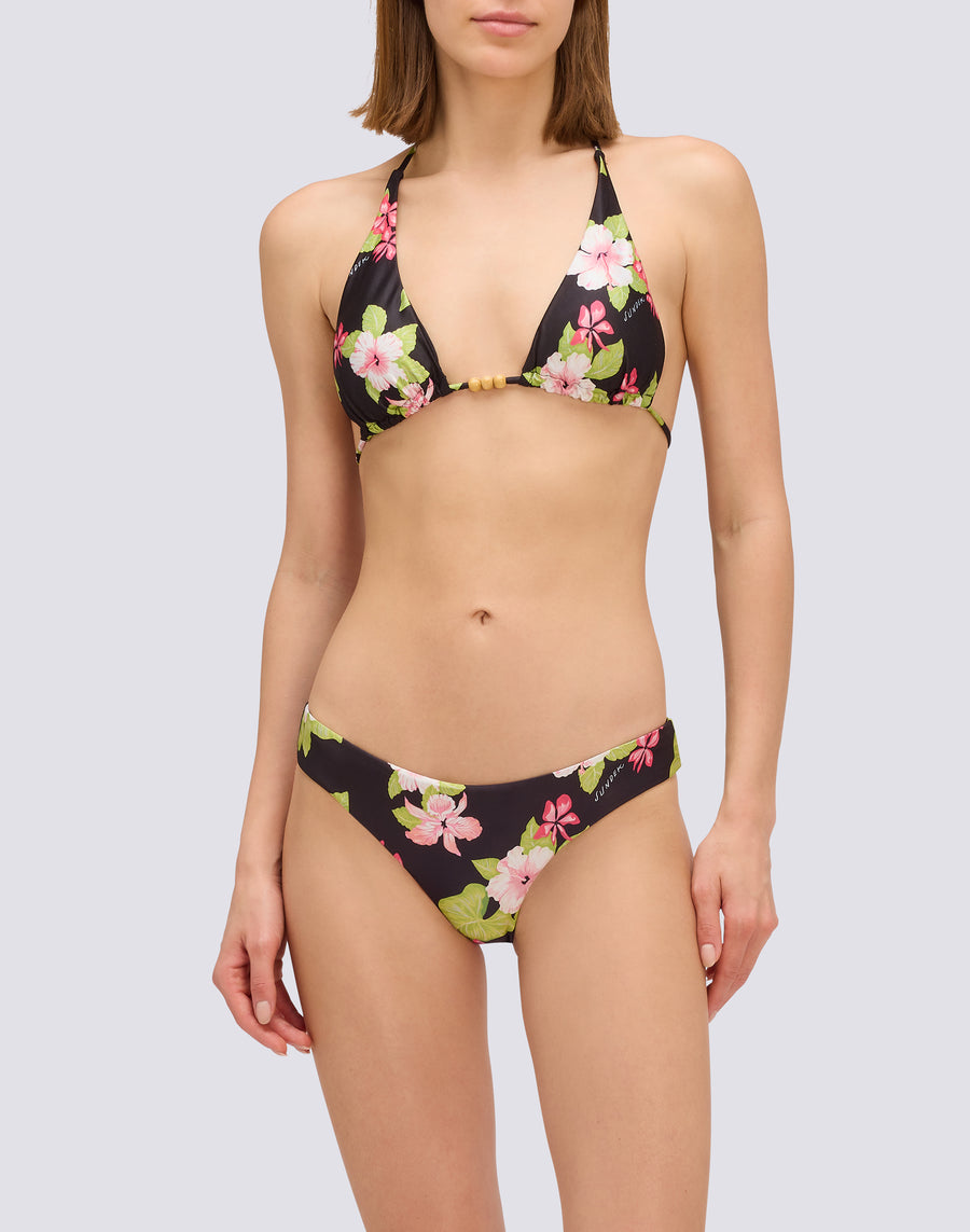Garbo American triangle top in Dreamy Hawaii print, with wooden beads decorating the ties. Removable padding and regular fit. Matching briefs sold separately.