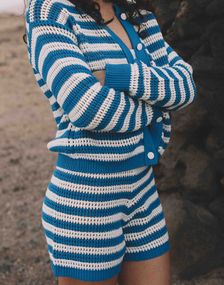 Experience maximum comfort and style with our women's striped knit shorts. With their design and soft fabric, they offer you a unique look. Perfect for any occasion, alone or combined with the coordinated sweater.