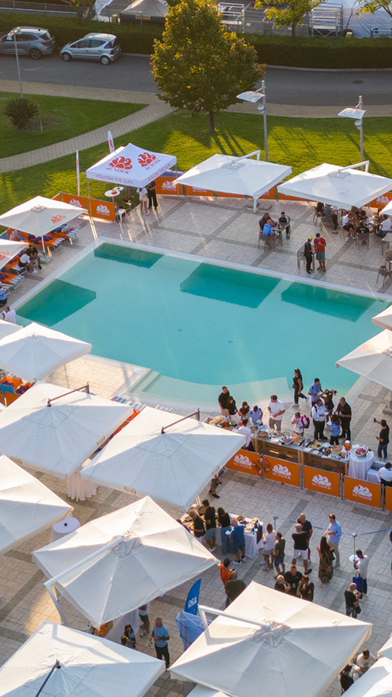El fin de semana del 12, 13 y 14 de septiembre de 2025 en Misano, Sundek fue protagonista de un evento de gran visibilidad. Fuimos socios oficiales del evento exclusivo en la zona de la piscina situada detrás del circuito. Llevamos nuestro espíritu alegre y dinámico a un entorno único, creando un ambiente inolvidable. En la zona Deluxe celebramos el ADN de la marca con una exposición dedicada a nuestros icónicos bañadores.