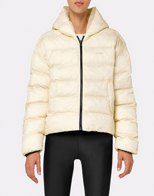 PLUMÍFERO CORTO REVERSIBLE CON CAPUCHA