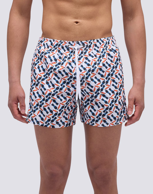 BAÑADOR CORTO DE CINTURA ELÁSTICA CON ESTAMPADO MULTI TUCÁN