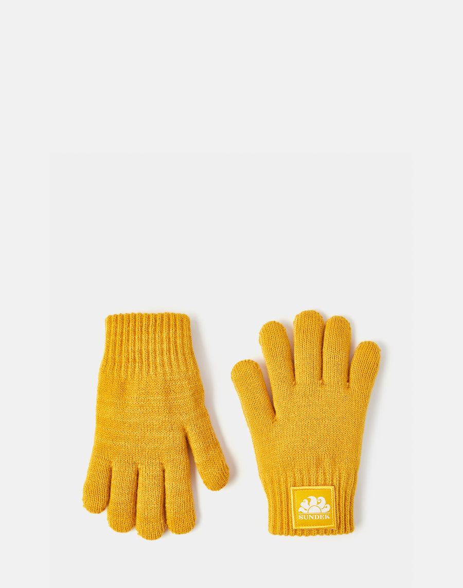 Guantes de lana acrílica con parche con logotipo e interior de forro polar.