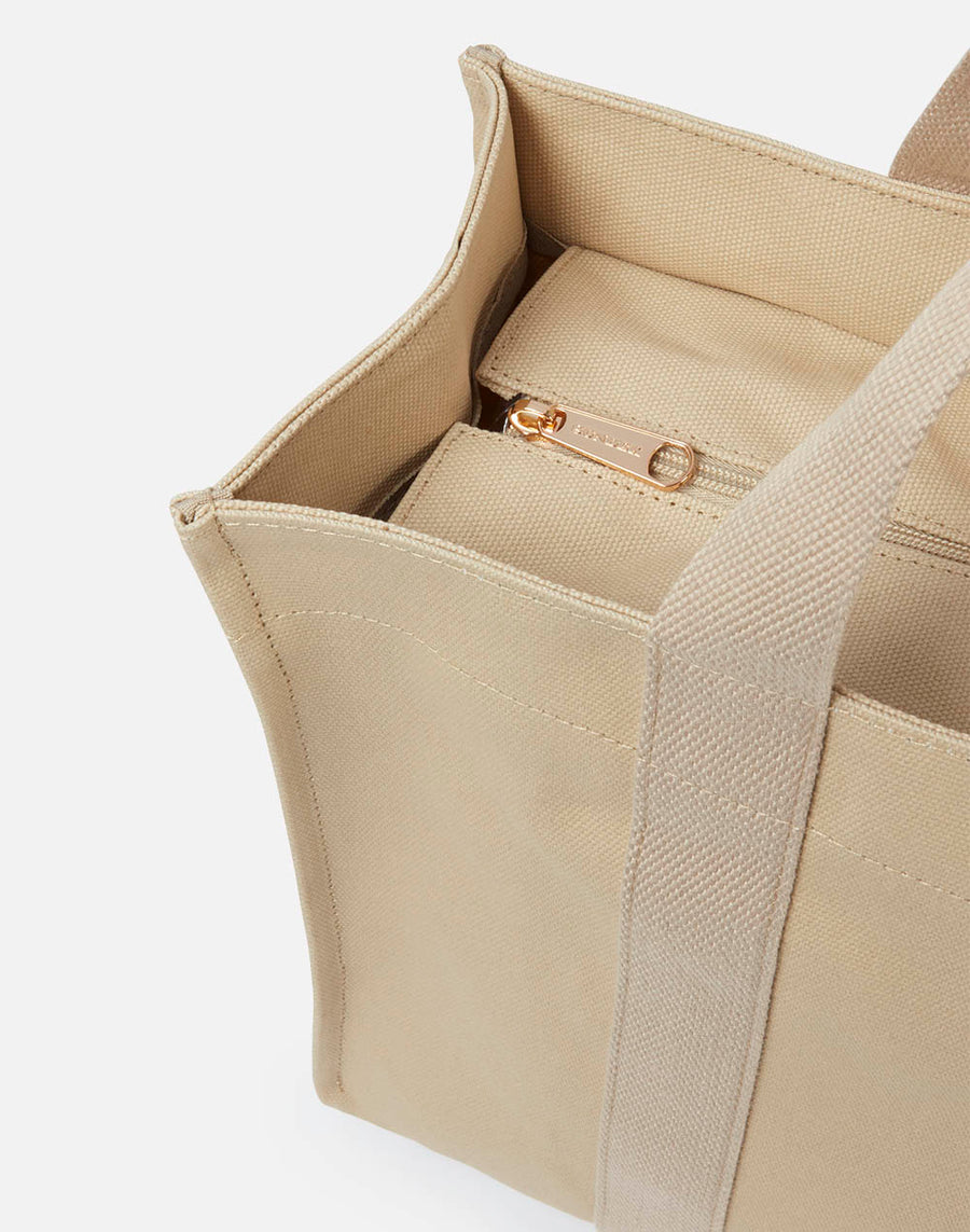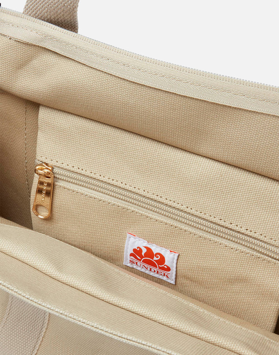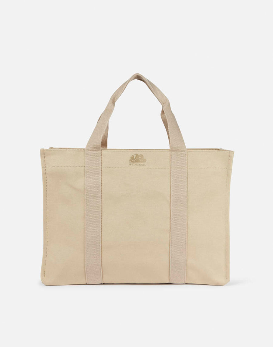grande y versátil, esta bolsa de lona es perfecta para combinar con sus atuendos estacionales. Modelo regular.