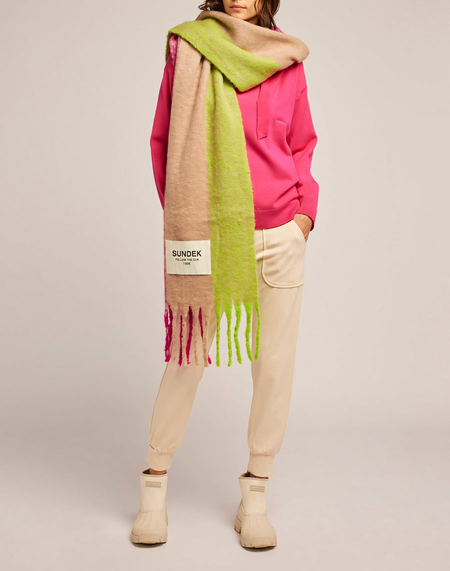 Una bufanda multicolor versátil y cómoda para combinar fácilmente con toda tu outerwear.