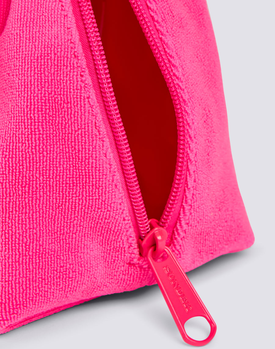 BOLSO DE MANO DE FELPA CON LAZO DECORATIVO
