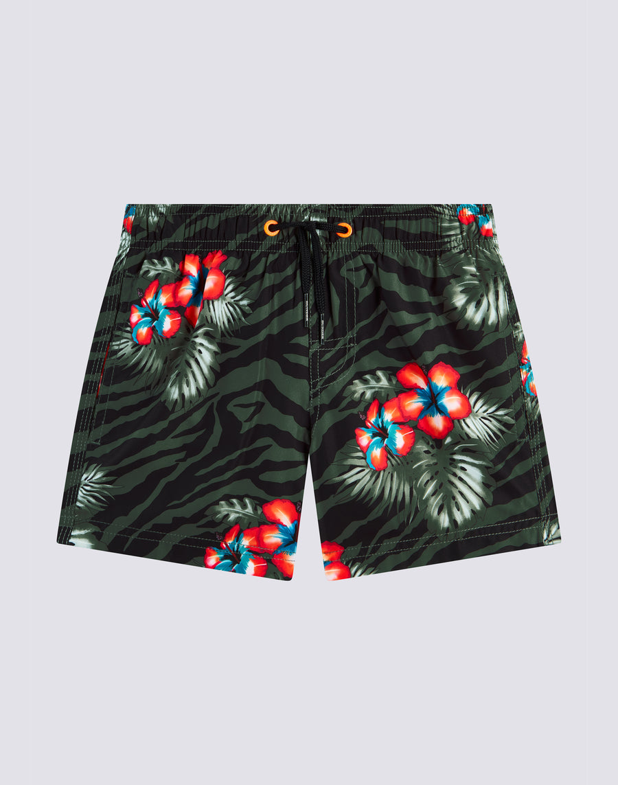 REPREVE® TRAJE DE BAÑO CORTO CON CINTURA ELÁSTICA Y ESTAMPADO JUNGLE HIBI