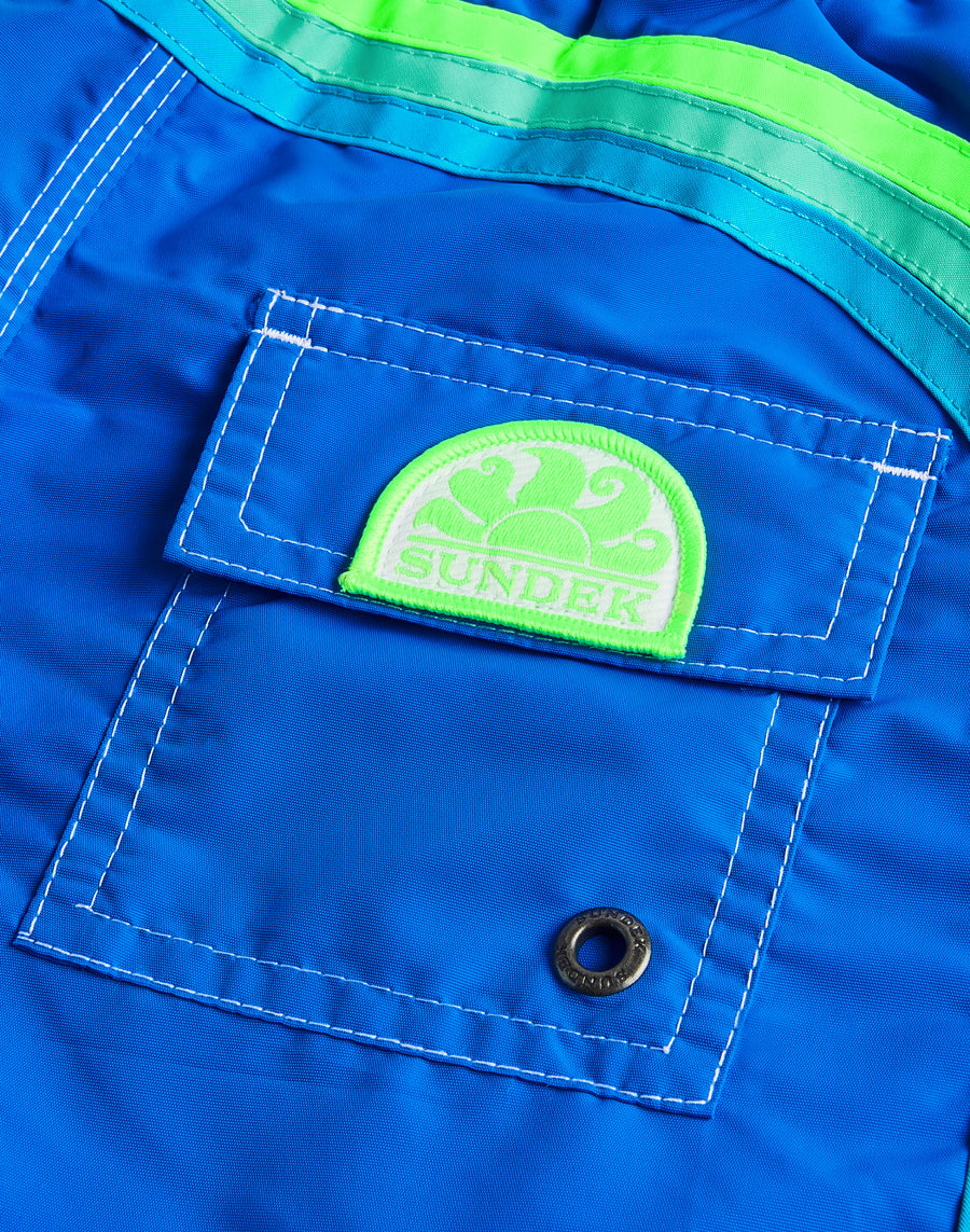 Color intenso y tejido ultracómodo y de secado rápido para este short de playa para niño. Un modelo que acompañará a tu hijo en sus múltiples actividades en vacaciones, perfecto para moverse y jugar libremente. Está confeccionado con nuestra tela de tafetán de nailon tradicional y está construido con costuras de tres agujas que lo hacen duradero con el tiempo. Para empacar, año tras año.