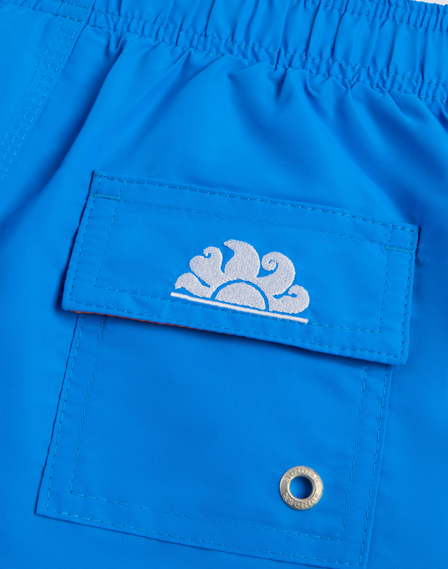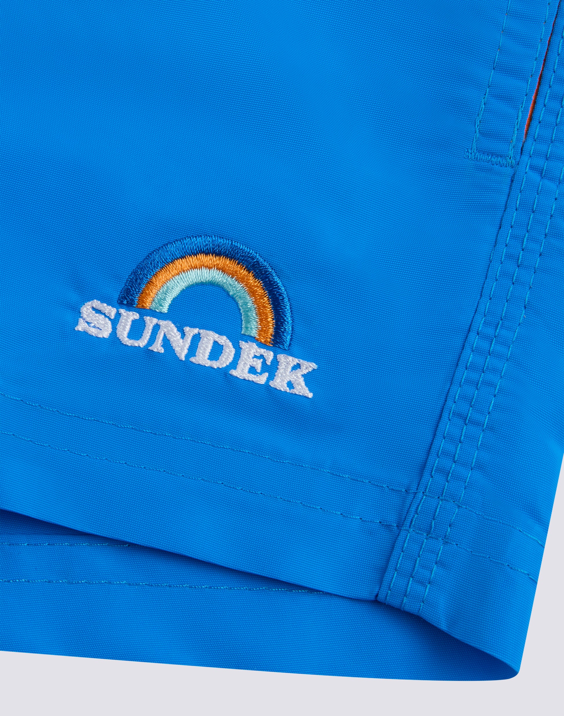 ICÓNICO BAÑADOR CORTO DE TAFETÁN CON CINTURA ELÁSTICA Y BORDADO ARCO IRIS