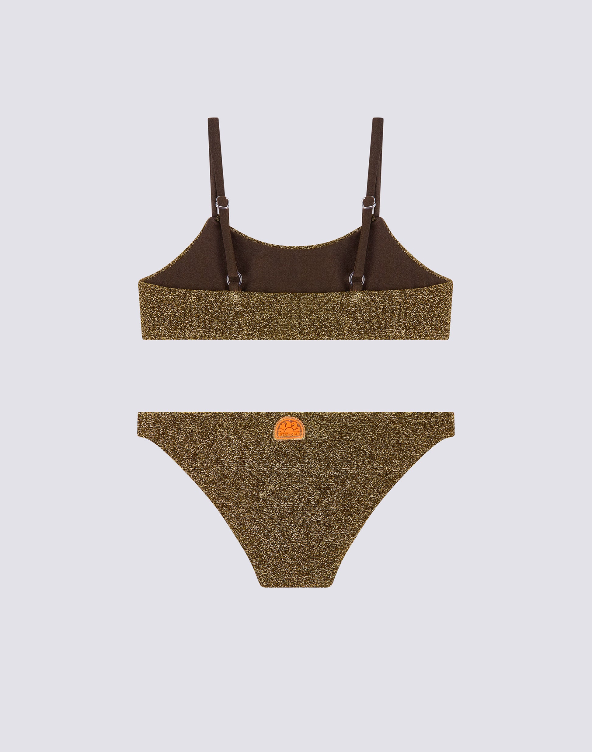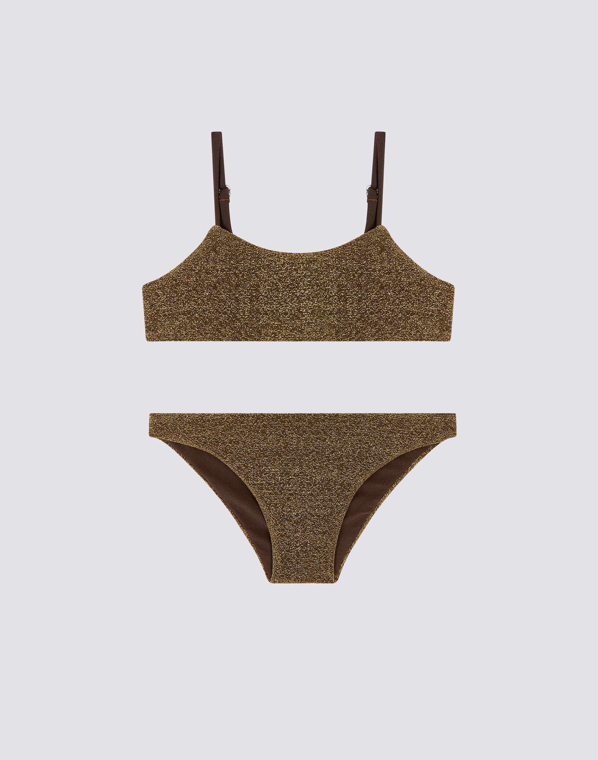 64% PA 36% EA Tejido de lúrex brillante y cómodo con forro que garantiza un contacto suave con la piel.