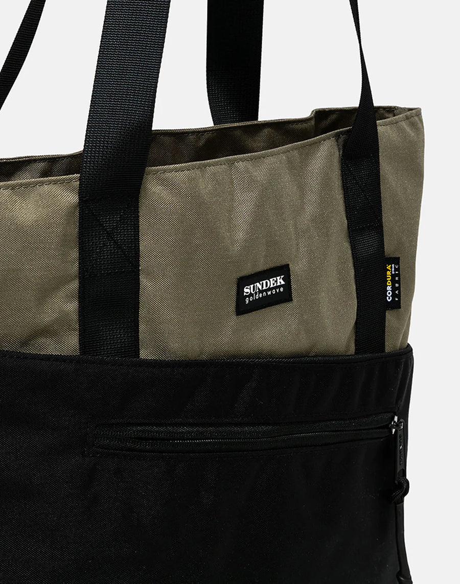 Tote bag espacioso en tejido técnico, perfecto para llevar todo lo esencial contigo e incluso el portátil gracias al cómodo bolsillo exterior y los bolsillos interiores.