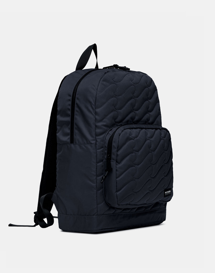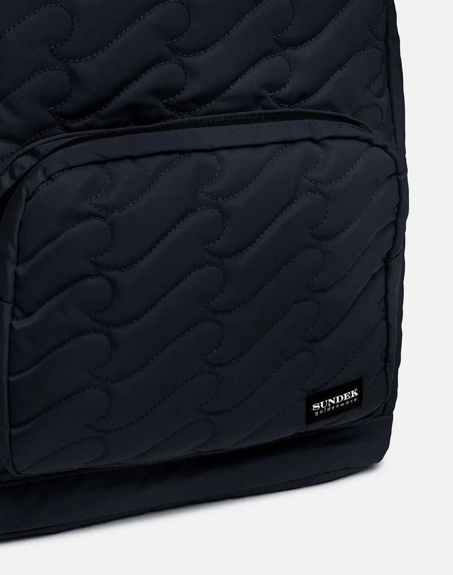 Mochila acolchada con el característico pespunte de olas y bolsillo interior para el portátil.