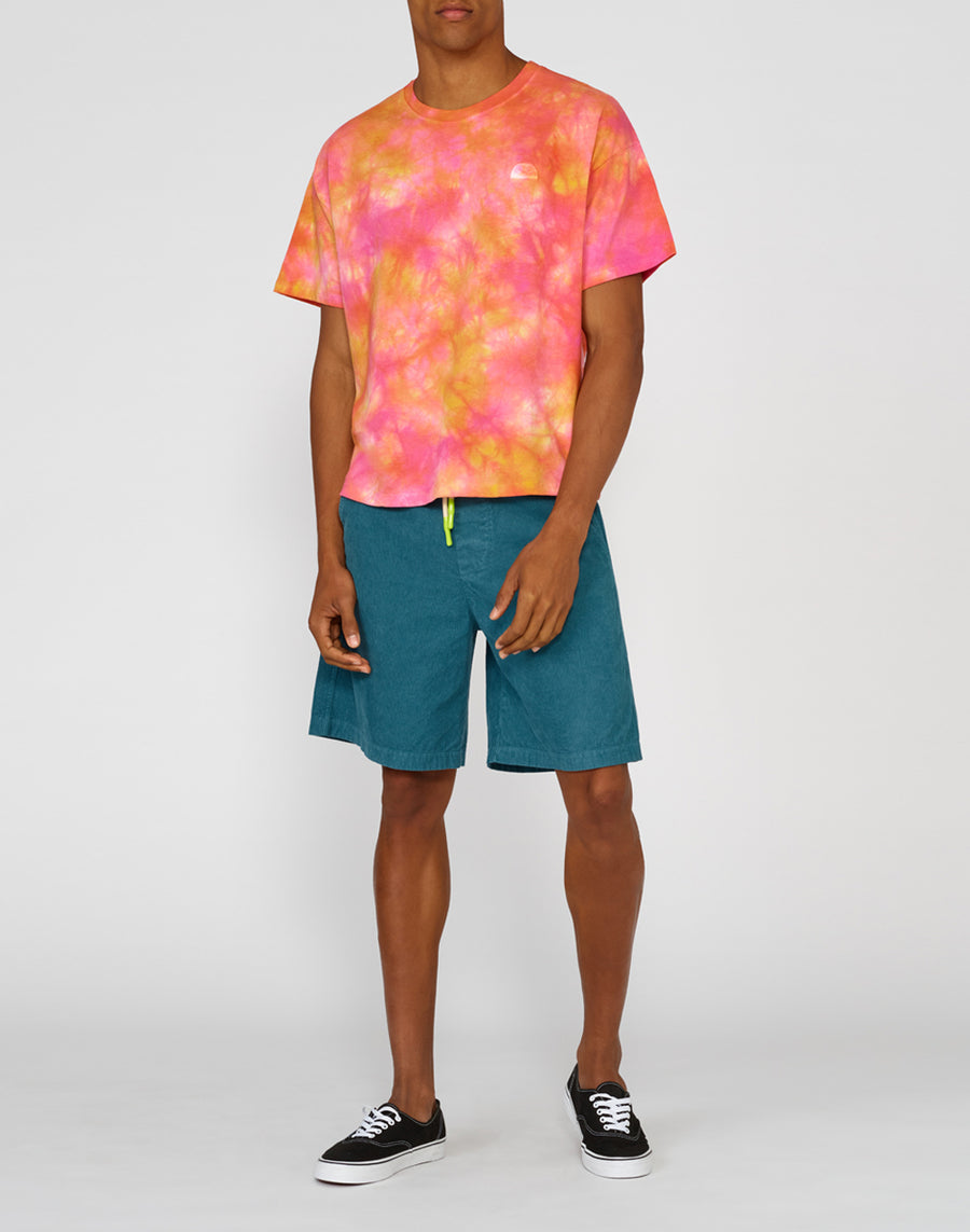 Sugerencias de estilo y color casual para esta camiseta masculina para hombres con procesamiento de tie-dye, una técnica de coloración de tela particular.