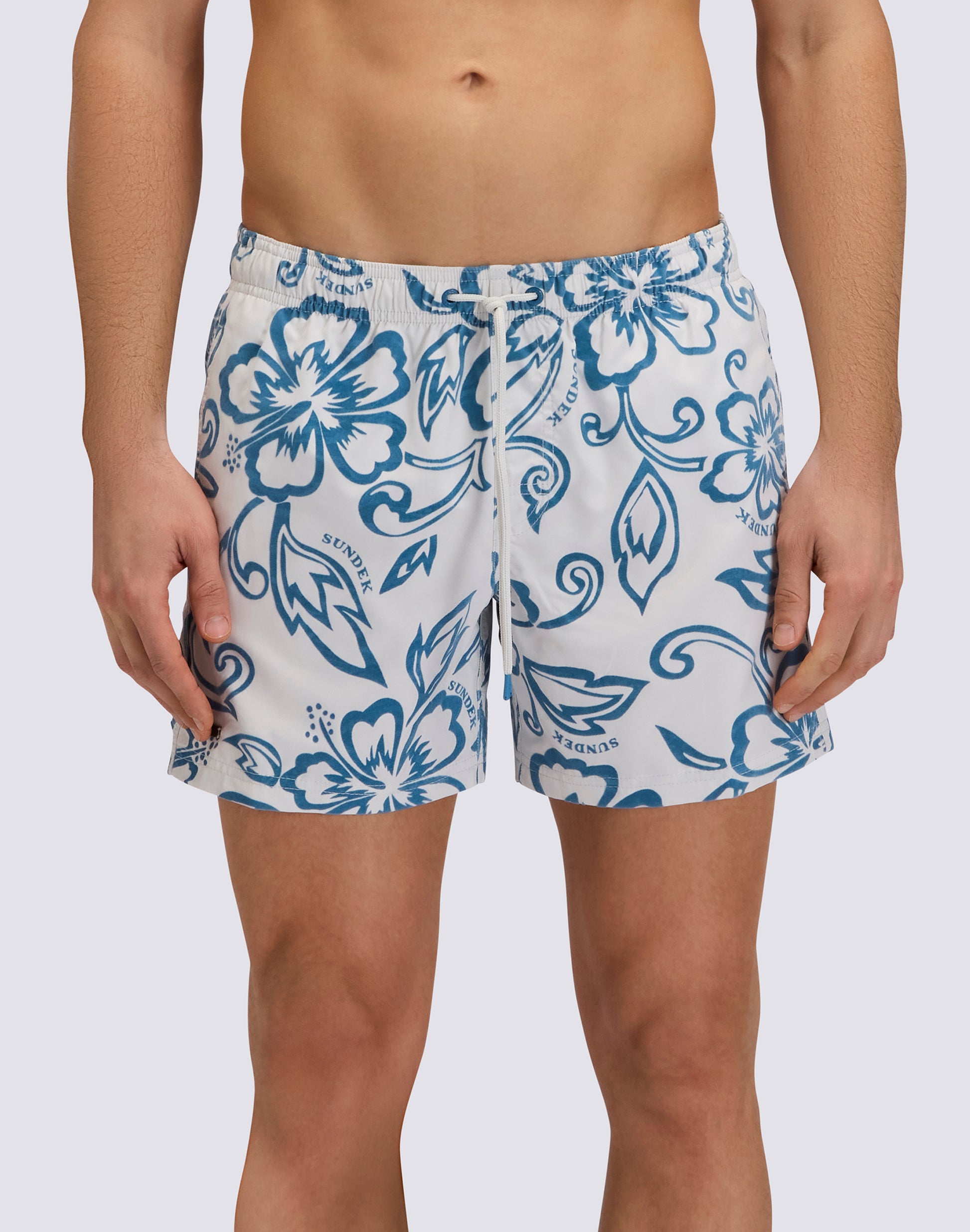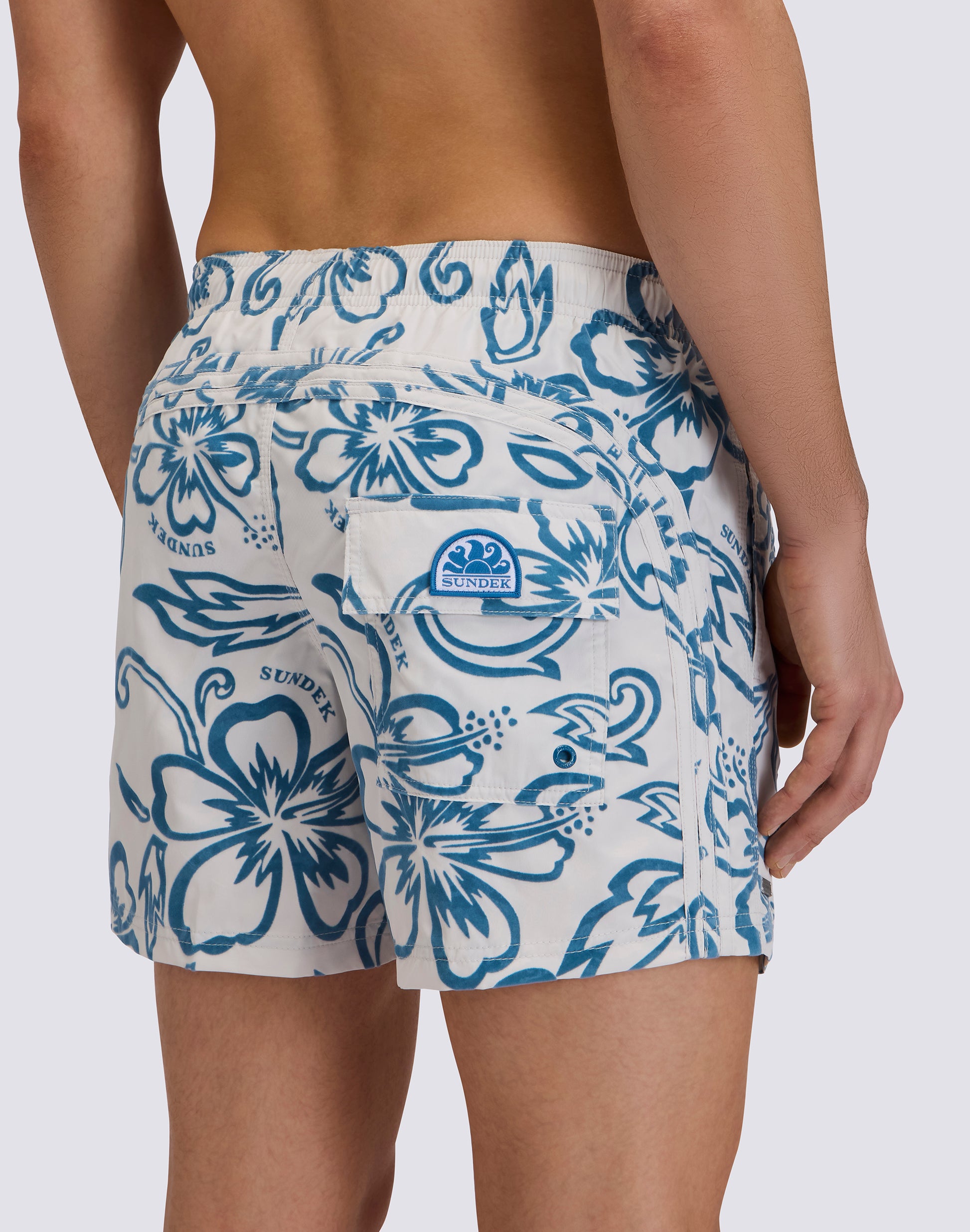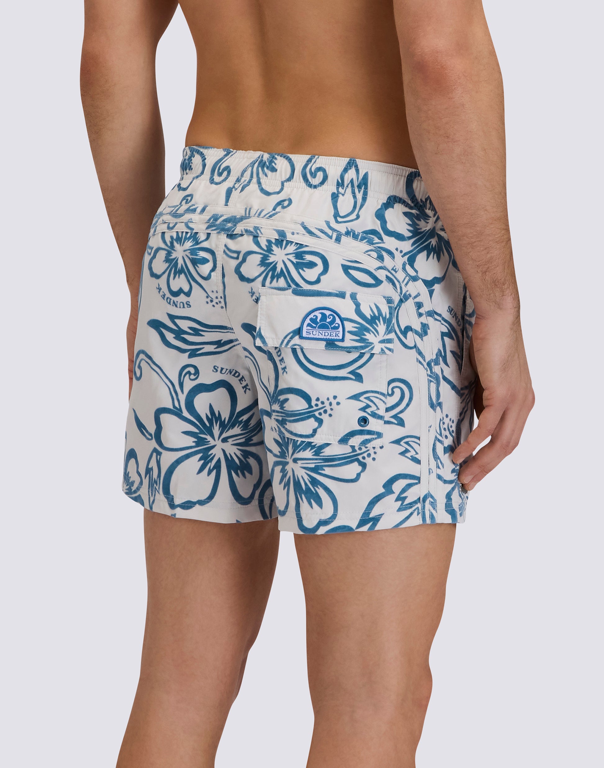 BAÑADOR CORTO DE HOMBRE GOLDENWAVE CON ESTAMPADO DE HIBISCO ARCHIVE FLOCK