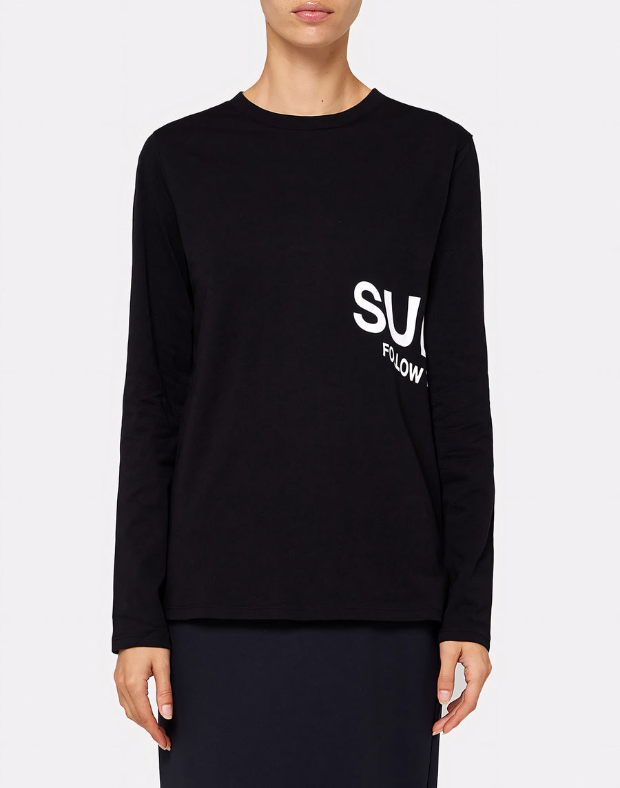 Camiseta acampanada de manga larga para mujer con maxieslogan Sundek, para todos los looks informales y de ocio. Suave y cómoda, es la camiseta para usar de temporada en temporada, sola o como base para jerséis y sudaderas: te acompañará en viajes, vacaciones y en todas las ocasiones en las que quieras lucir una prenda versátil y con personalidad.