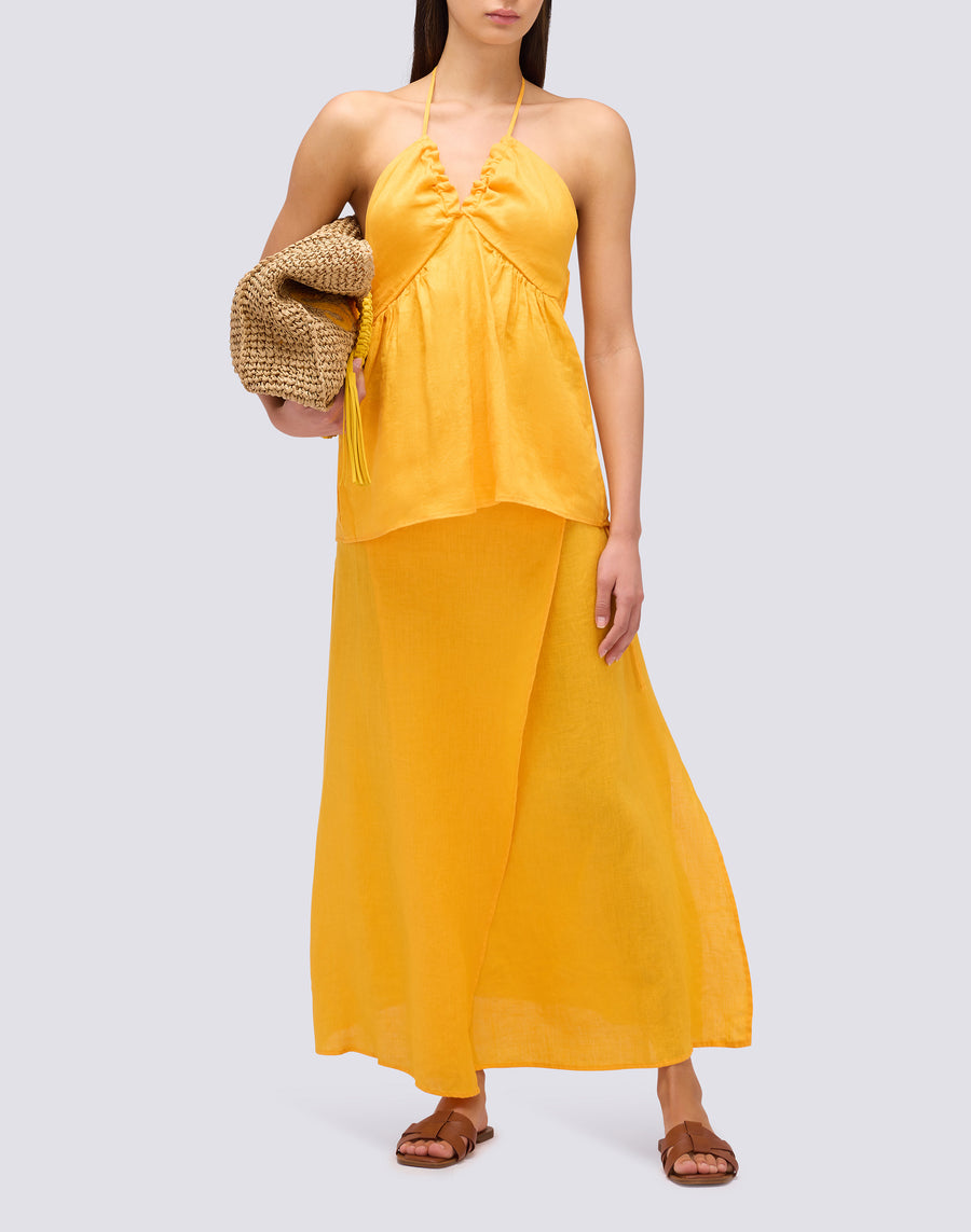 Este largo falda de lino es perfecto para los días calurosos gracias a su frescura y ligereza. Con su tejido natural, te sentirás cómoda y relajada todo el día. ¡Un imprescindible para el verano!