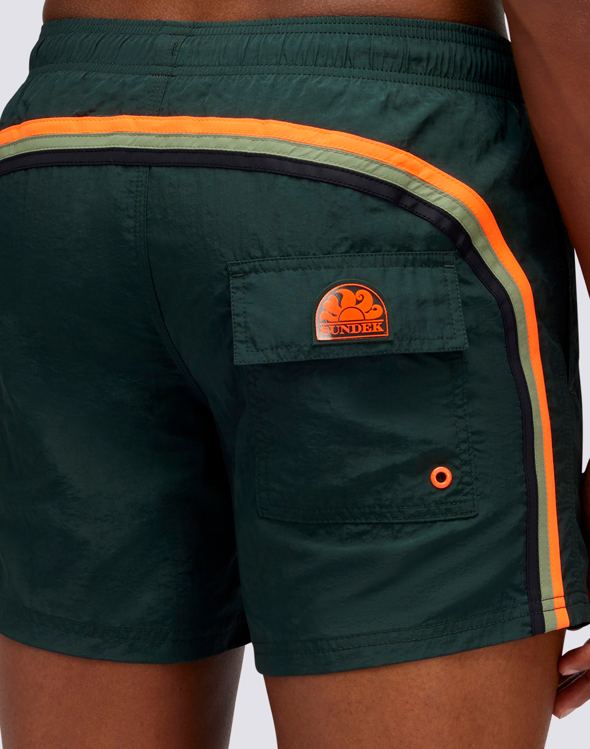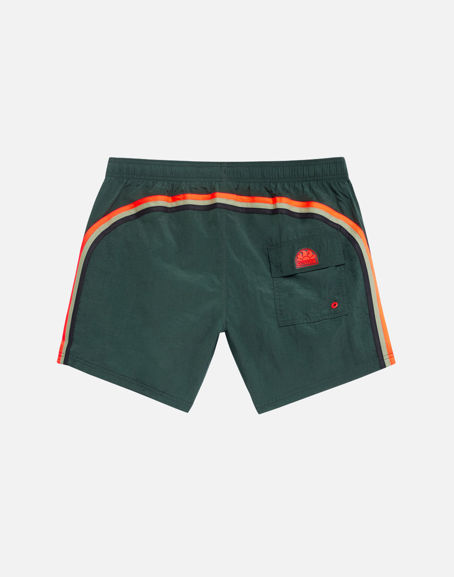 Disfraz de hombre corto de color corto con colores brillantes. Ligero, resistente, se seca muy rápidamente y está hecho de nylon de tafetán, la icónica tela del domingo. Tiene nuestras costuras clásicas de tres agujas que aumentan la resistencia con el tiempo y nuestro arco iris en la parte posterior.