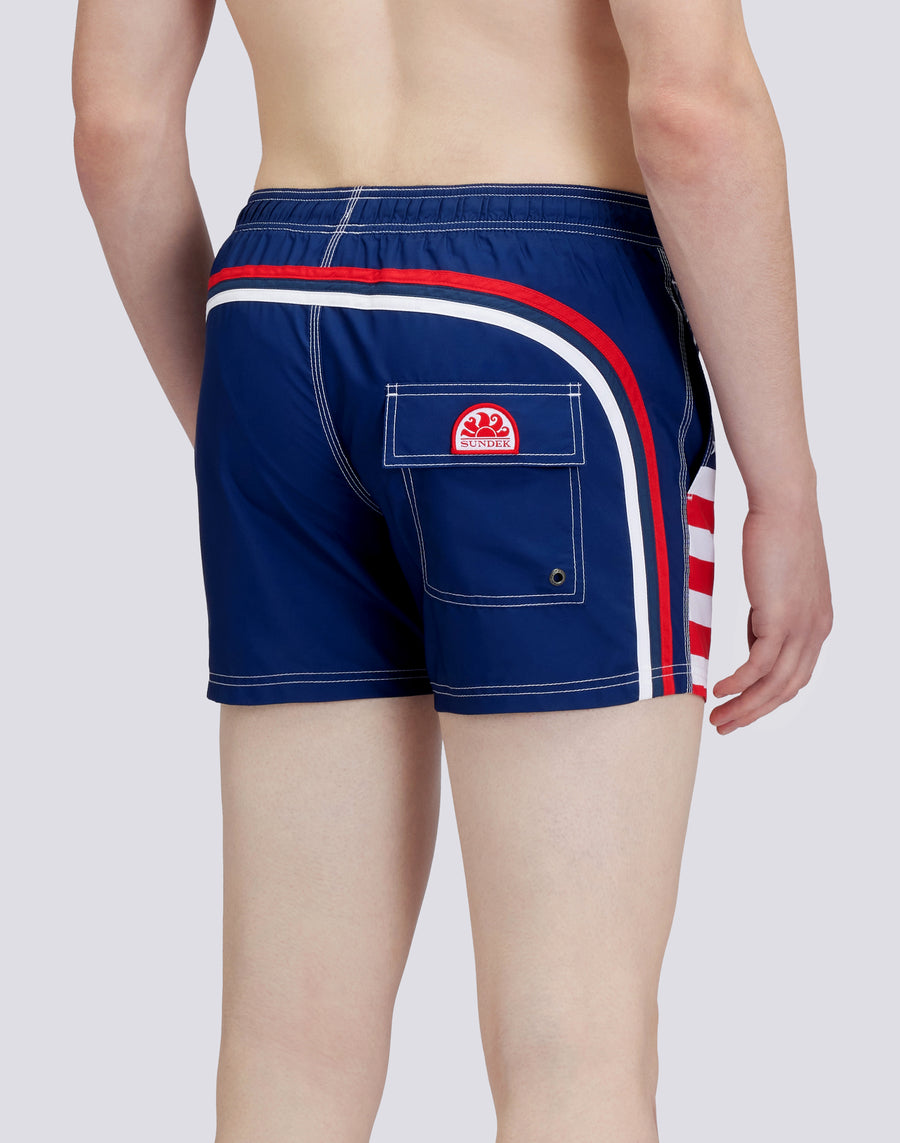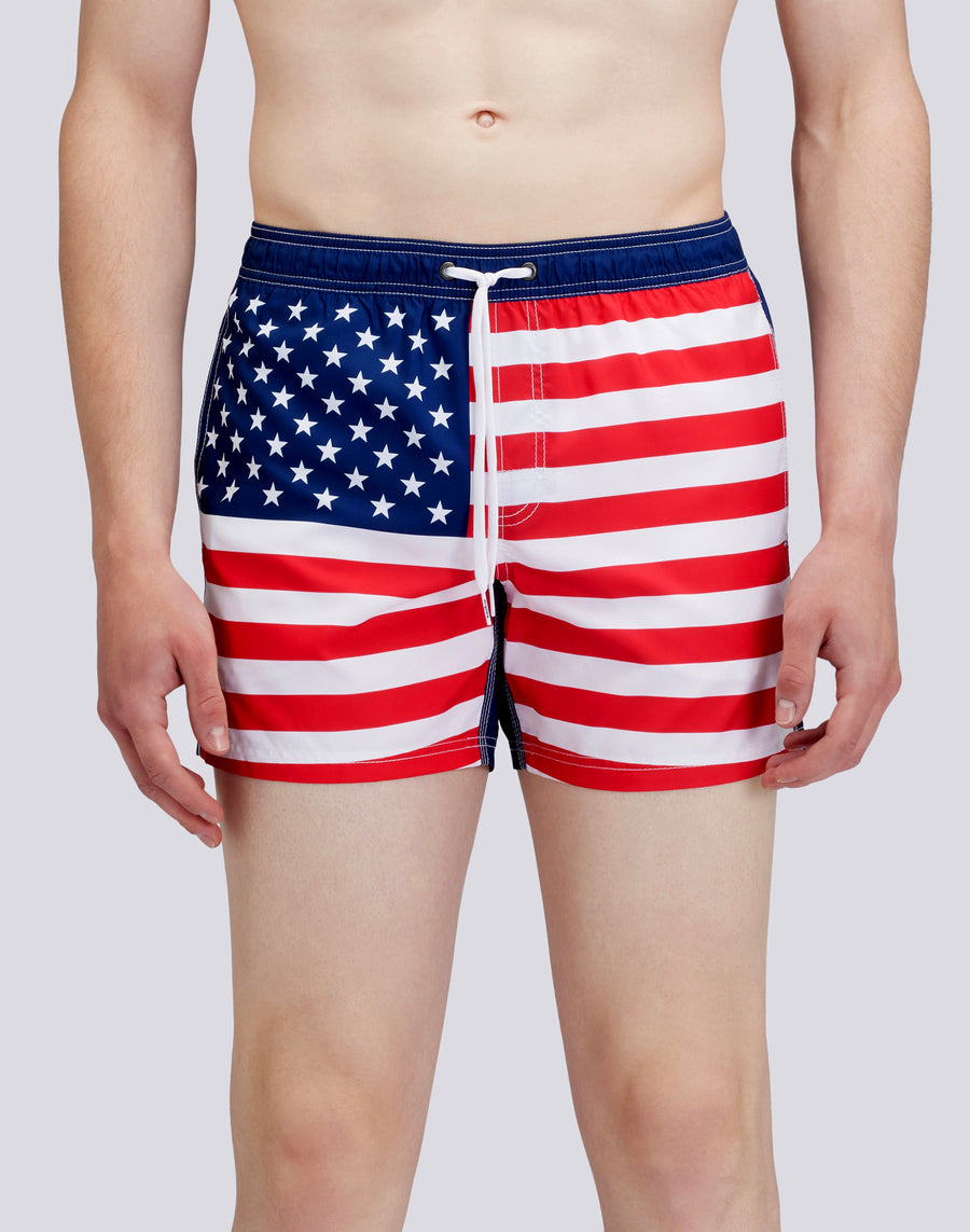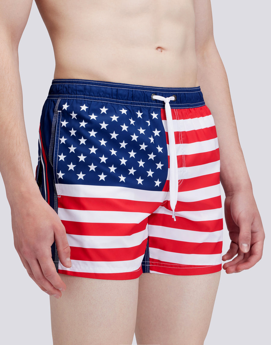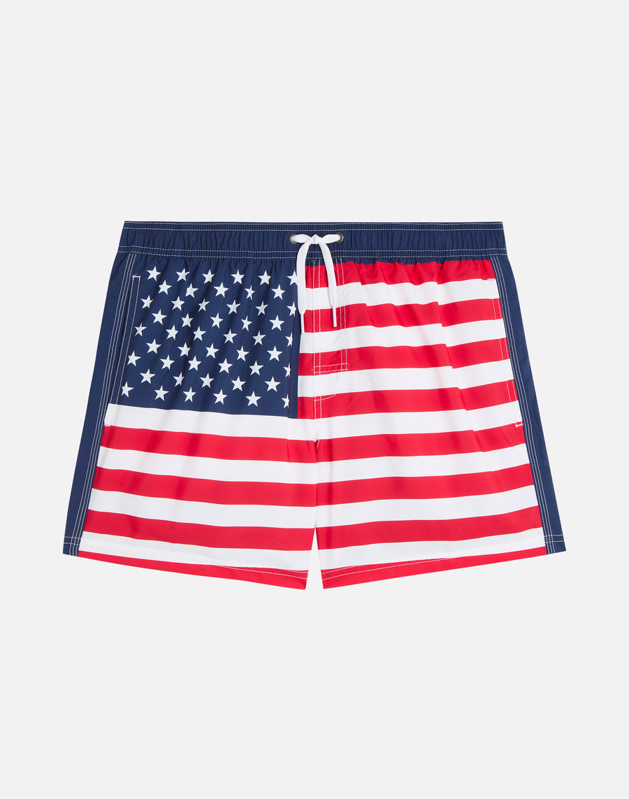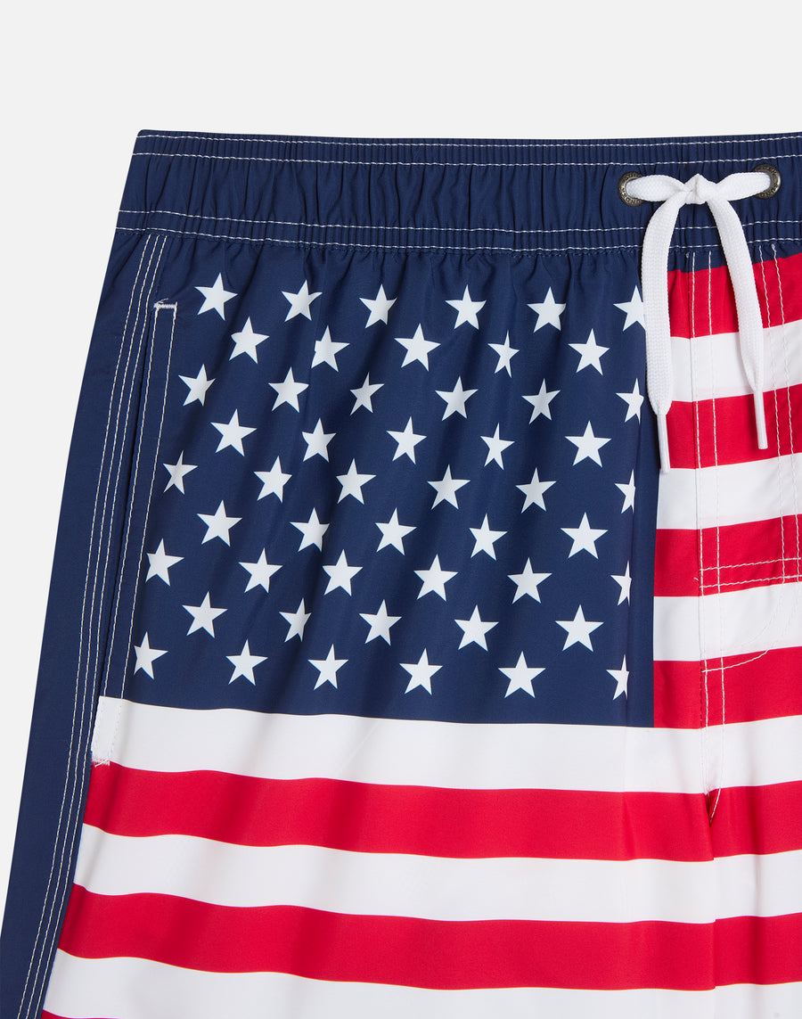 TRAJE DE BAÑO CORTO CINTURA ELÁSTICA POLIÉSTER RECICLADO REPREVE® BANDERA ESTADOS UNIDOS