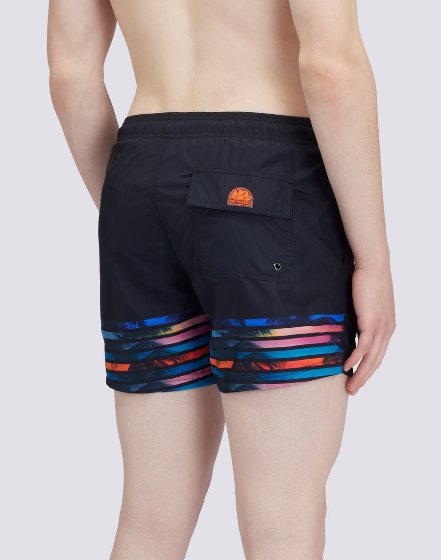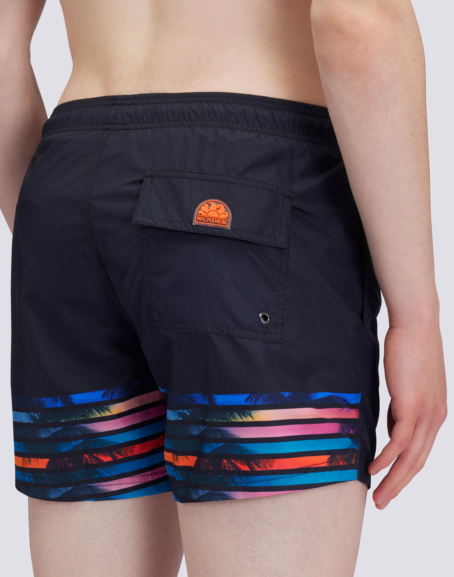 TRAJE DE BAÑO CORTO CON CINTURA ELÁSTICA Y ESTAMPADO BIG PALM DE POLIÉSTER RECICLADO