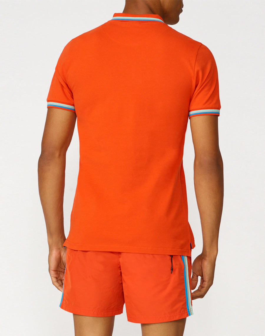 El polo de hombre tiene que ver con los detalles con el cuello y los puños detallados con el icónicas bandas tricolores, la firma de Sundek. Perfecta para combinar con vaqueros, pantalones casual y bermudas, dando un toque de personalidad a los outfits.