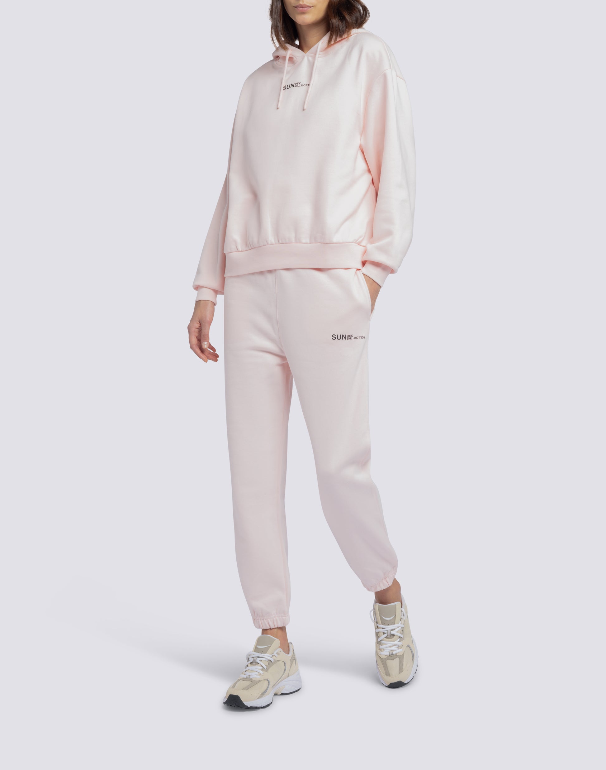 Carácter informal y relajado para esta sudadera de mujer con capucha y logotipo estampado en la parte delantera.