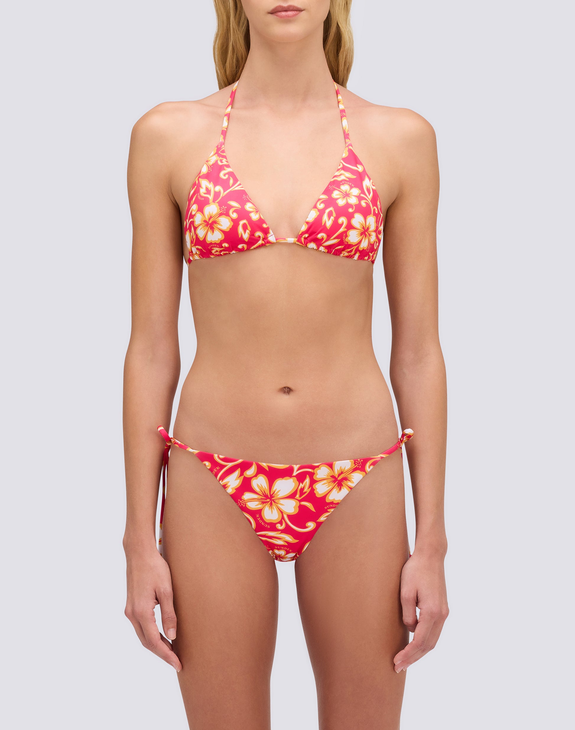 El top de triángulo Jennifer presenta un estampado tradicional de Sundek SK23 con flores de colores, perfecto para un divertido look veraniego en la playa. Comodidad y estilo se unen para ofrecerte un bañador de mujer que resalta tu personalidad y tu gusto único.
