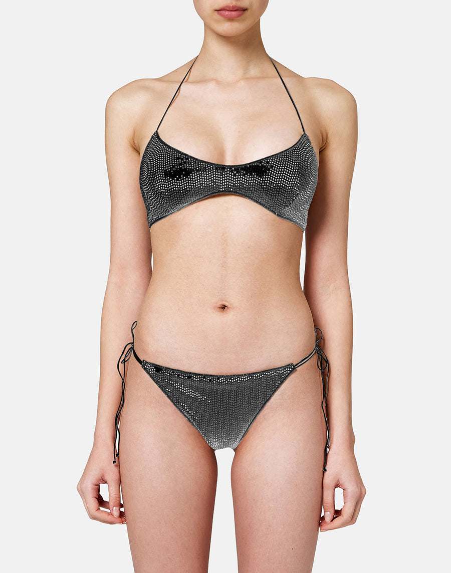 Elige el estilo de este top bralette con lentejuelas brillantes para un look beachwear con un carácter decidido, o úsalo también por la noche debajo de blusas, vestidos y camisetas sin mangas por los que pueda asomar.