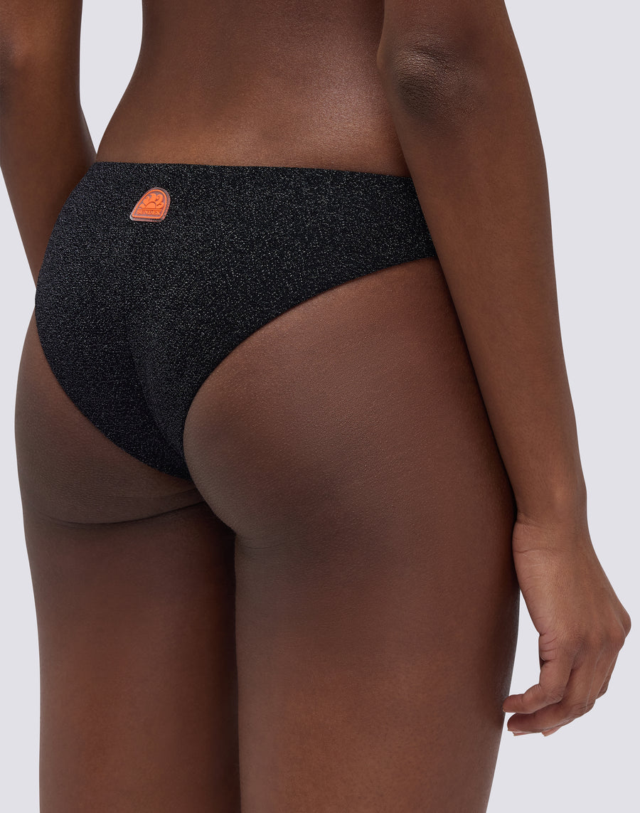 64 % POLIÉSTER 36 % ELASTANO Tejido de lúrex brillante, cómodo y con forro que garantiza un contacto suave con la piel.