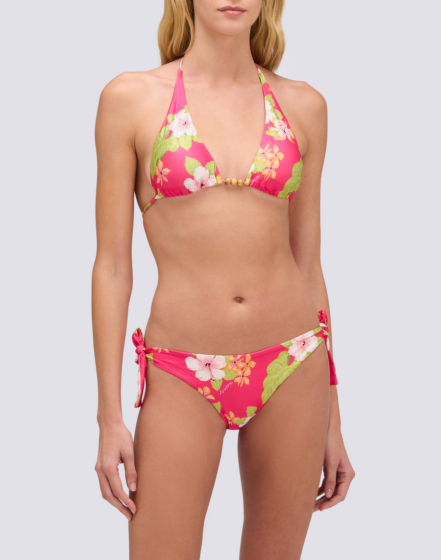 Top de triángulo Garbo American en estampado Dreamy Hawaii, con cuentas de madera decorando los lazos. Relleno extraíble y corte regular. Las braguitas a juego se venden por separado.