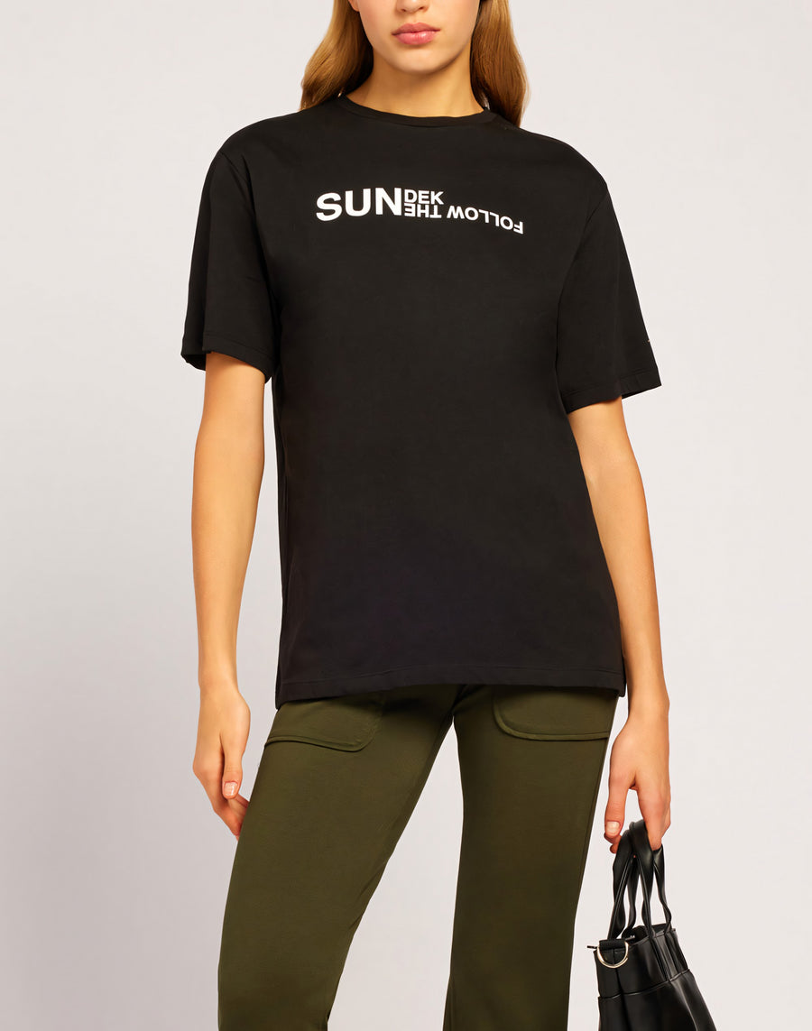 Camiseta oversize de mujer con logo Sundek para usar como base de todos tus looks casuales y de tiempo libre. Esta maxicamiseta de mujer suave y cómoda se convertirá inmediatamente en un comodín en tu guardarropa dedicado a los atuendos casuales. : perfecto para viajar, en tu tiempo libre y para todas las ocasiones informales.