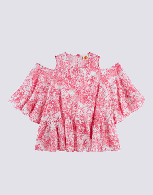 ROBE COURTE AVEC ÉPAULES NUES IMPRIMÉ FLEUR DE JOIE