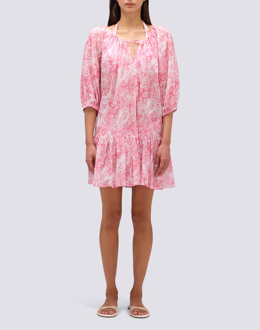 ROBE COURTE EN VOILE DE COTON IMPRIMÉ FLEUR DE JOIE