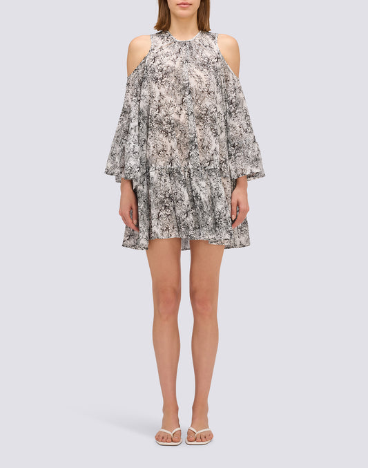 ROBE COURTE AVEC ÉPAULES DÉCOUVERTES EN VOILE DE COTON