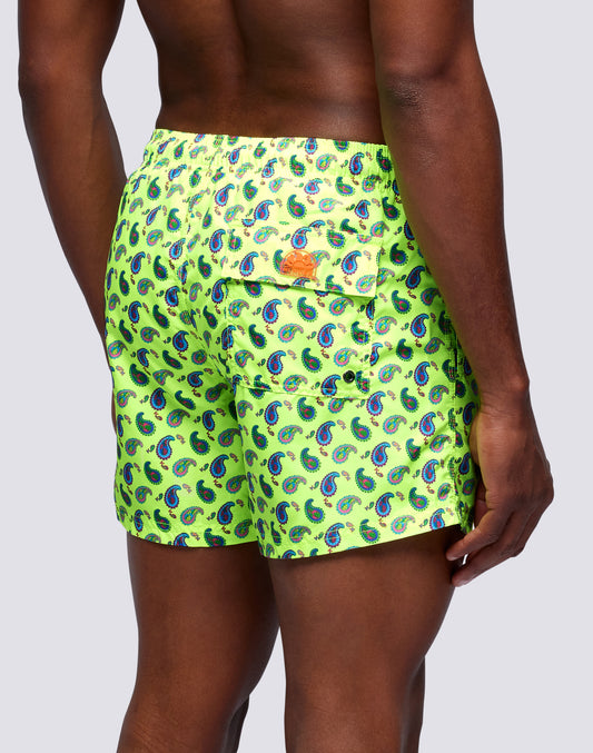 TRAJE DE BAÑO CORTO CON CINTURA ELÁSTICA Y MICROESTAMPADO CRAZY PAISLEY