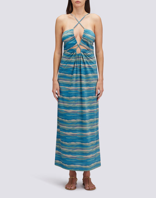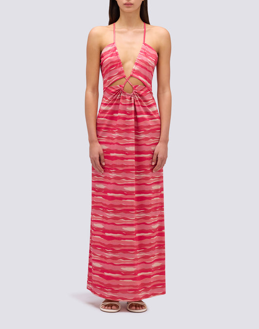ROBE LONGUE EN VOILE DE COTON AVEC IMPRIMÉ SAVANE TROPICALE