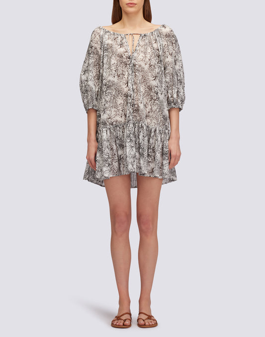 ROBE COURTE EN VOILE DE COTON IMPRIMÉ FLEUR DE JOIE