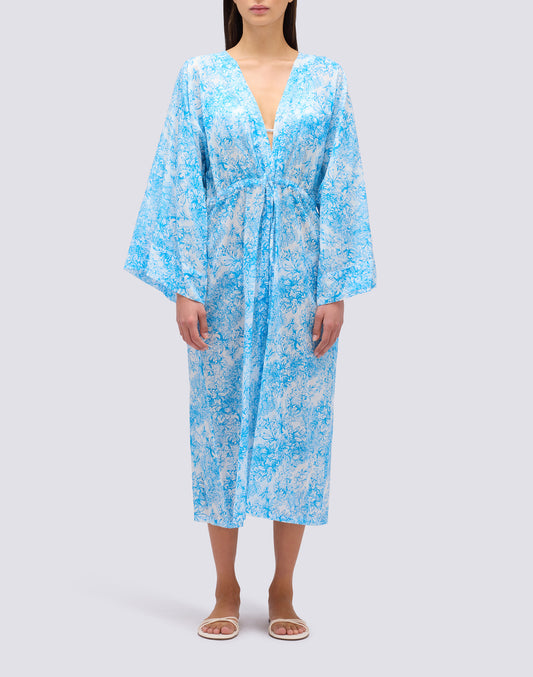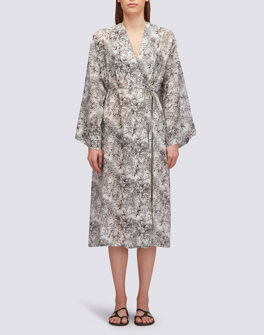 ROBE KIMONO LONGUE IMPRIMÉE FLEUR DE JOIE