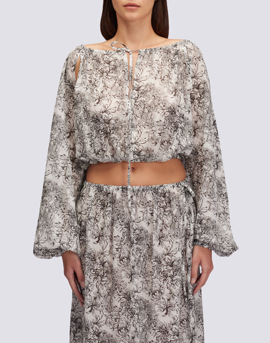 BLOUSE EN VOILE DE COTON AVEC IMPRIMÉ SAVANE TROPICALE