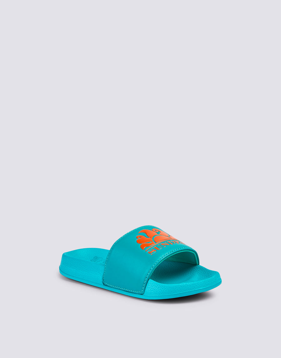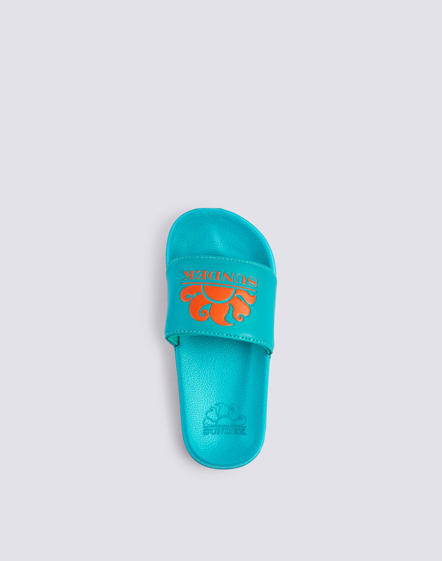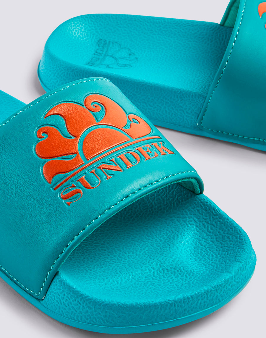 Chaussons bandeau Costa pour enfants, caoutchoutés et avec un ajustement confortable. Elles se caractérisent par l'impression contrastée du logo Sundek sur la bande et la hauteur de la semelle de 2,5 cm.