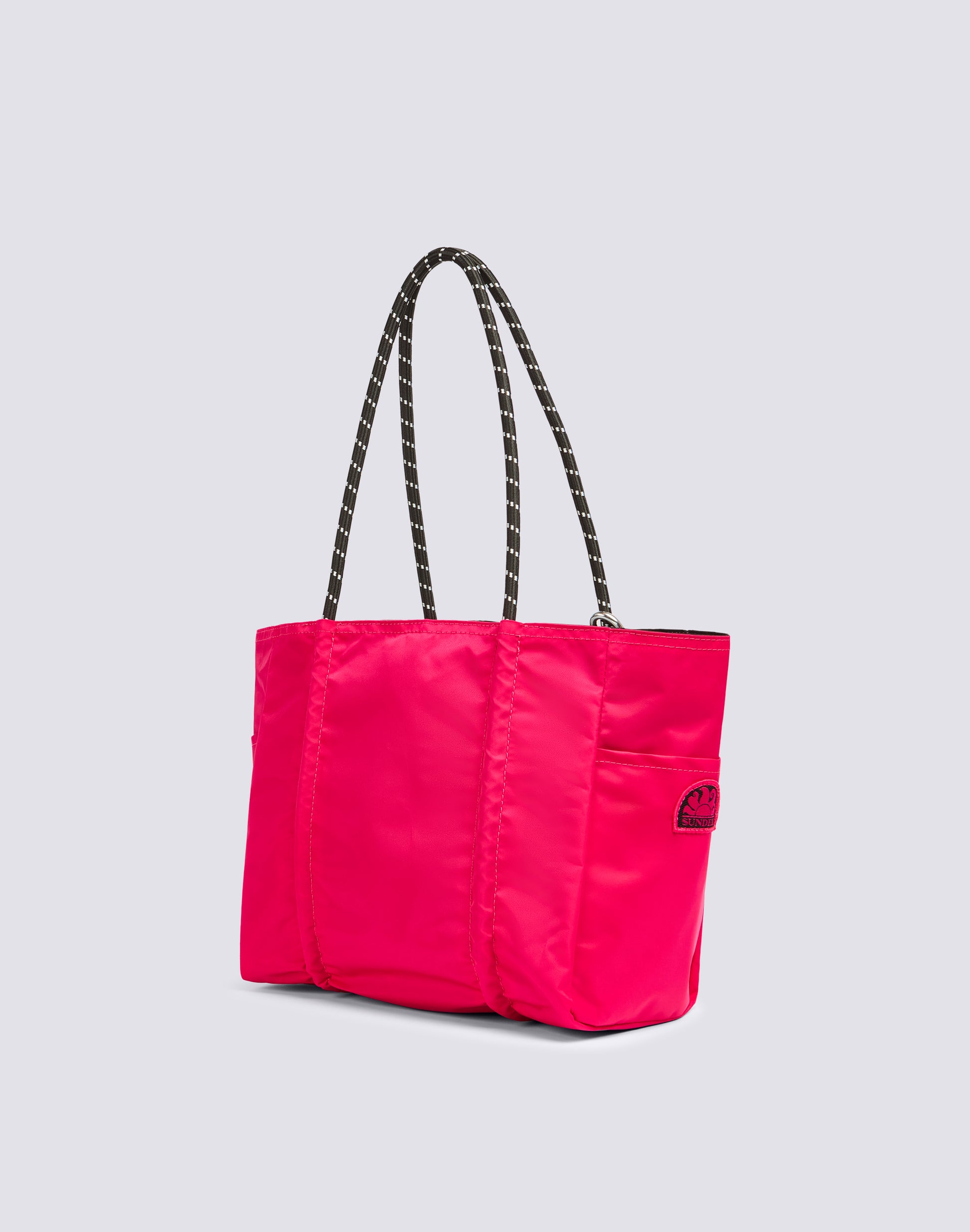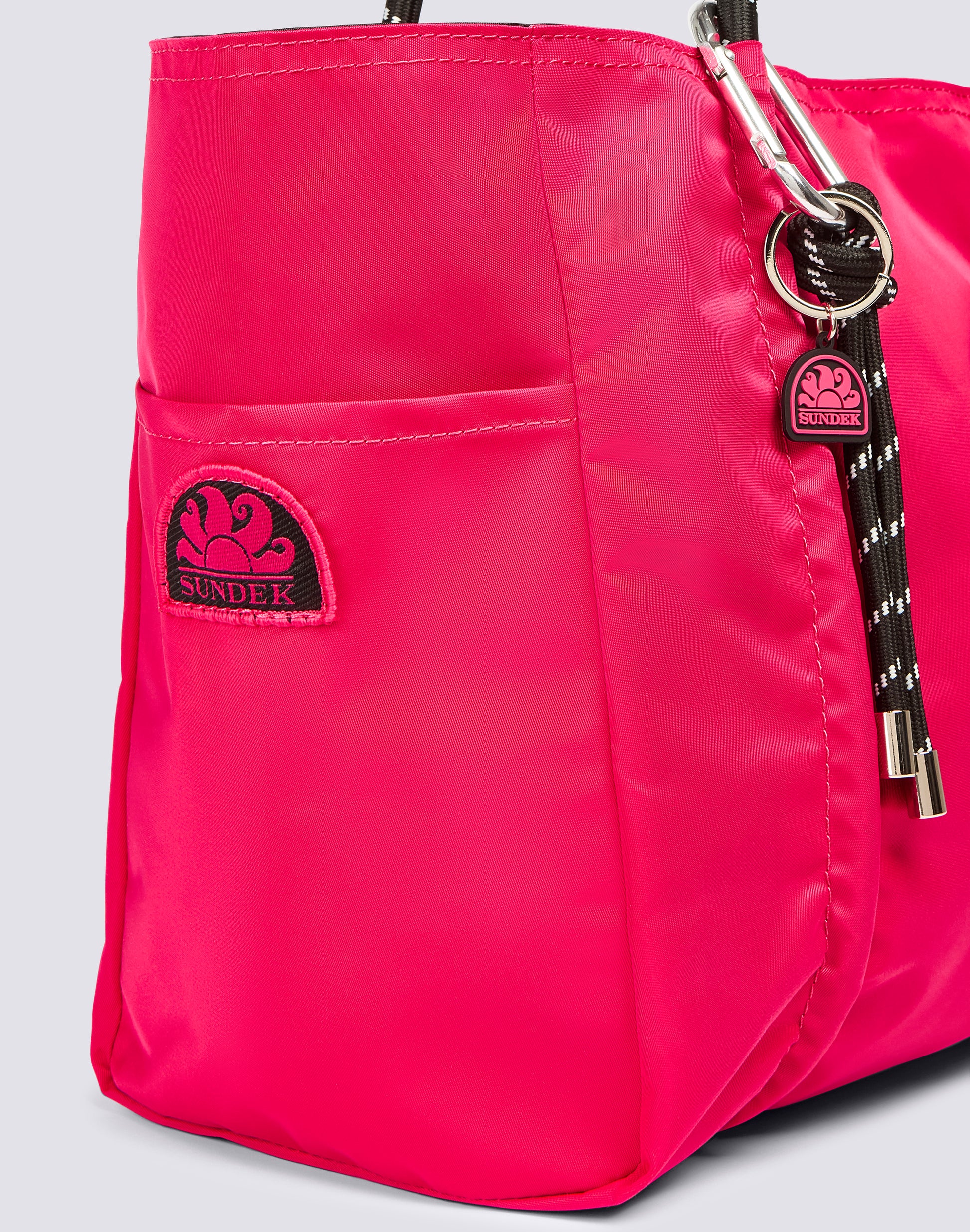 Sac moyen avec volants sur les deux côtés et anses bicolores.