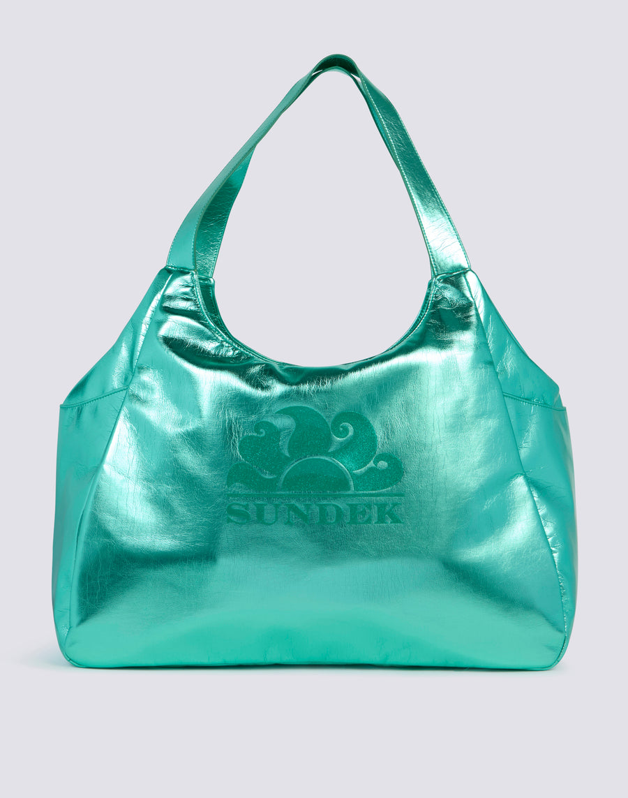 Capacité maximale pour transporter tout le nécessaire de plage, allure urbaine pour s'afficher également en ville avec une élégance nonchalante. À combiner avec la pochette clutch coordonnée.