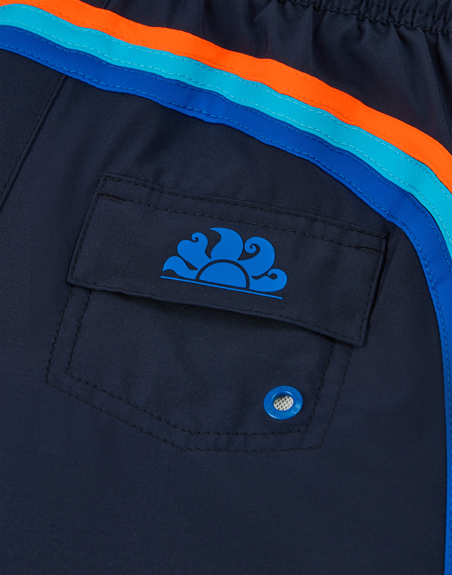 Couleur intense et tissu ultra-confortable à séchage rapide pour ce short de bain pour enfant. Un modèle qui accompagnera votre enfant dans ses mille activités pendant les vacances, parfait pour bouger et jouer en toute liberté. Léger, résistant, il sèche très rapidement et est fabriqué en tissu 4 Way Stretch. Il présente nos coutures classiques à trois aiguilles qui augmentent la résistance dans le temps et notre arc-en-ciel emblématique à l'arrière.