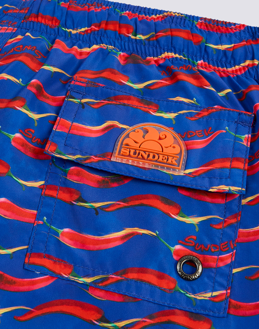 MAILLOT DE BAIN COURT À TAILLE ÉLASTIQUE ET IMPRIMÉ CHILINO EN POLYESTER RECYCLÉ