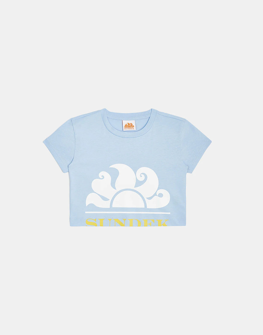 T-shirt court fille à porter sur un jean ou une jupe. Modèle incontournable du vestiaire Spring Summer 2023.