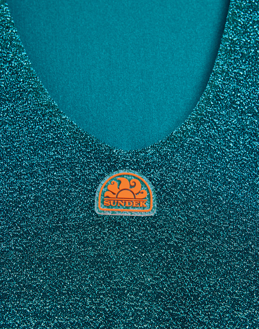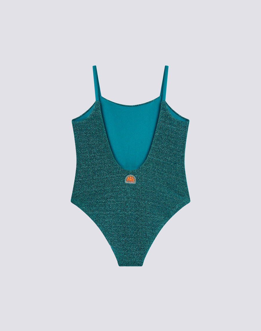 Scintillant grâce au lurex, à exhiber au bord de l'eau ou lors d'une journée à la piscine, assorti au modèle adulte pour maman.