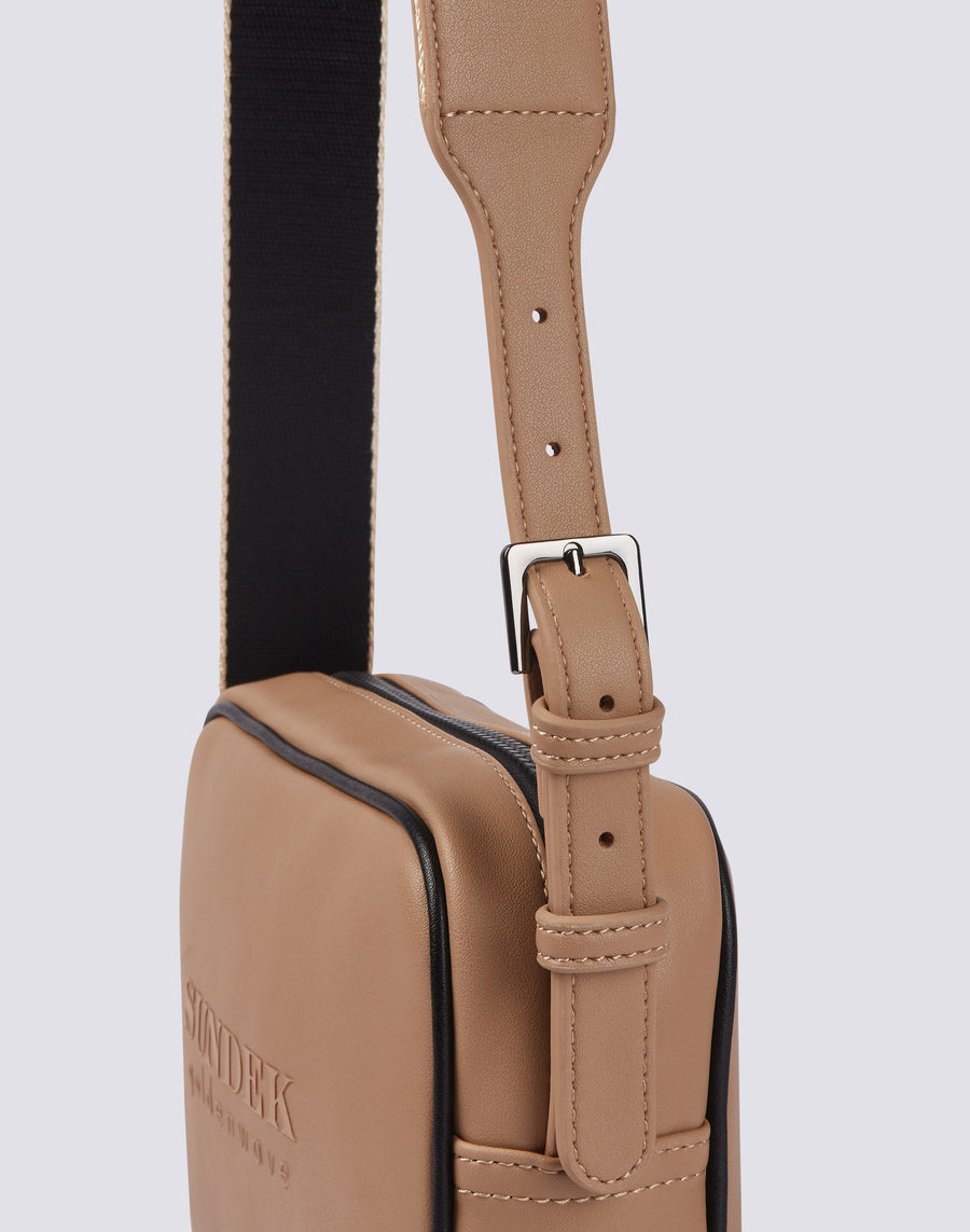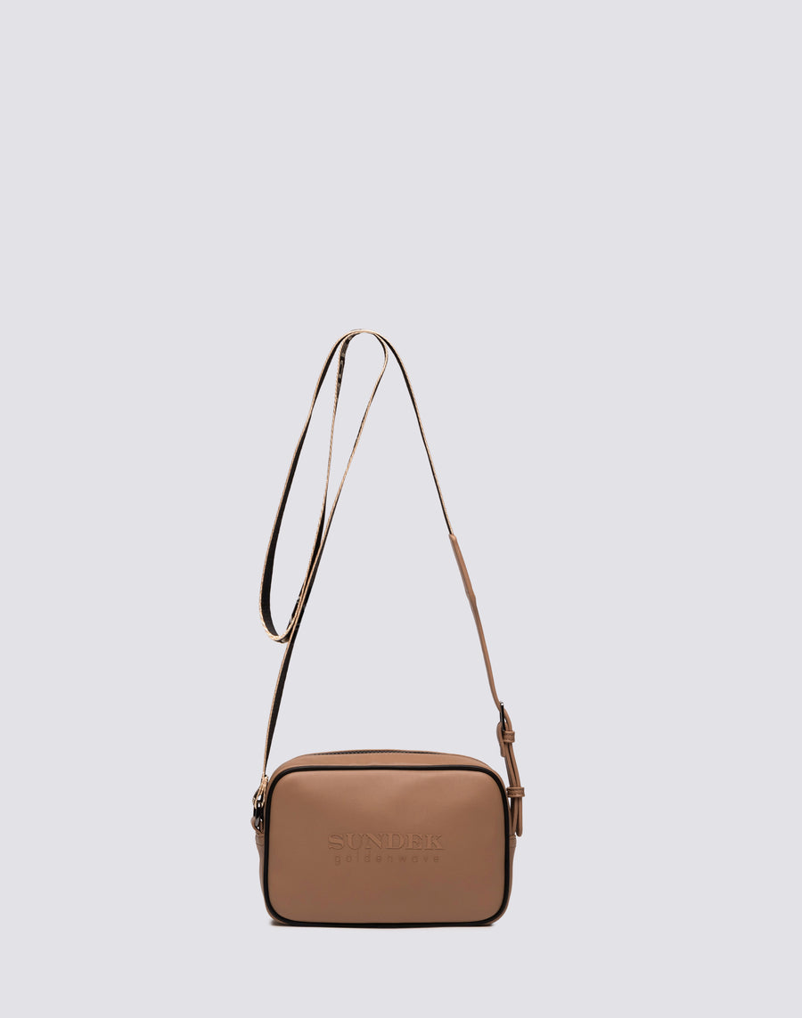 Votre garde-robe saisonnière ne peut se passer d'un sac d'appareil photo polyvalent et plein de caractère, dans le style parfait de Sundek. Parfait si vous êtes toujours en mouvement et que vous voulez transporter vos essentiels avec style et praticité.En simili cuir avec l'inscription Sundek Goldenwave sur le devant. Dimensions 21X14X5,5 cm.