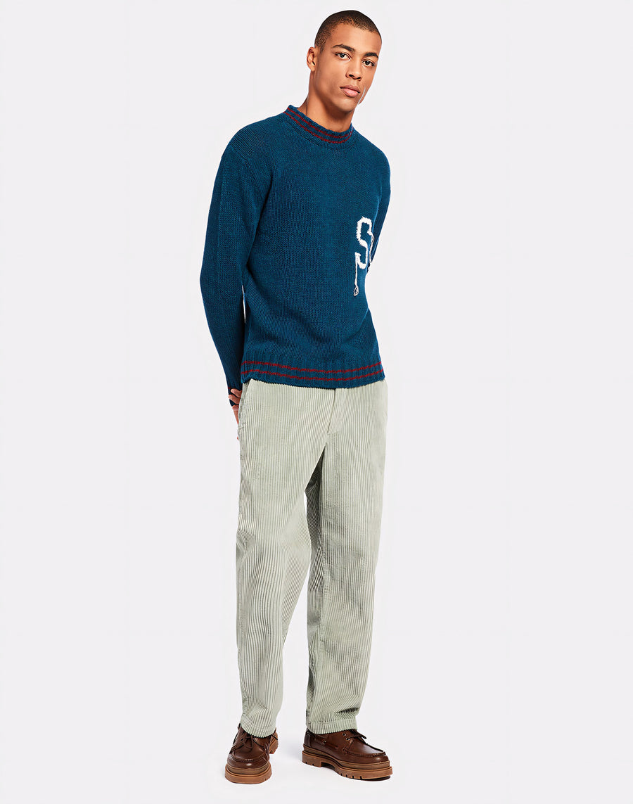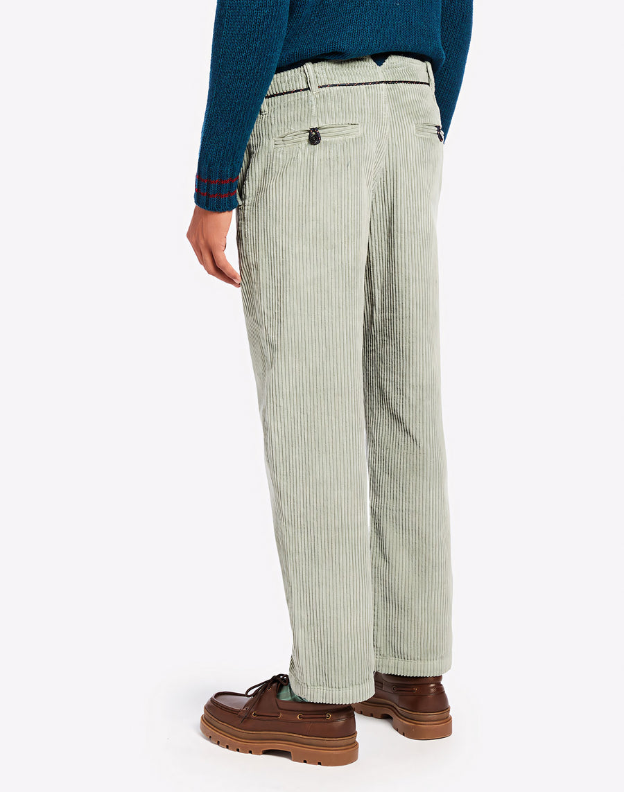 Pantalon court oversize coupe droite en velours à côtes surteint avec bride