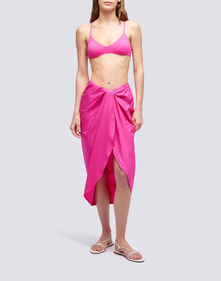 Jupe paréo en popeline de coton idéale à combiner sur un bikini, à utiliser à la plage ou pour une occasion.