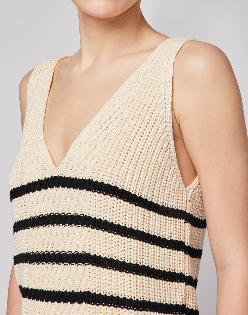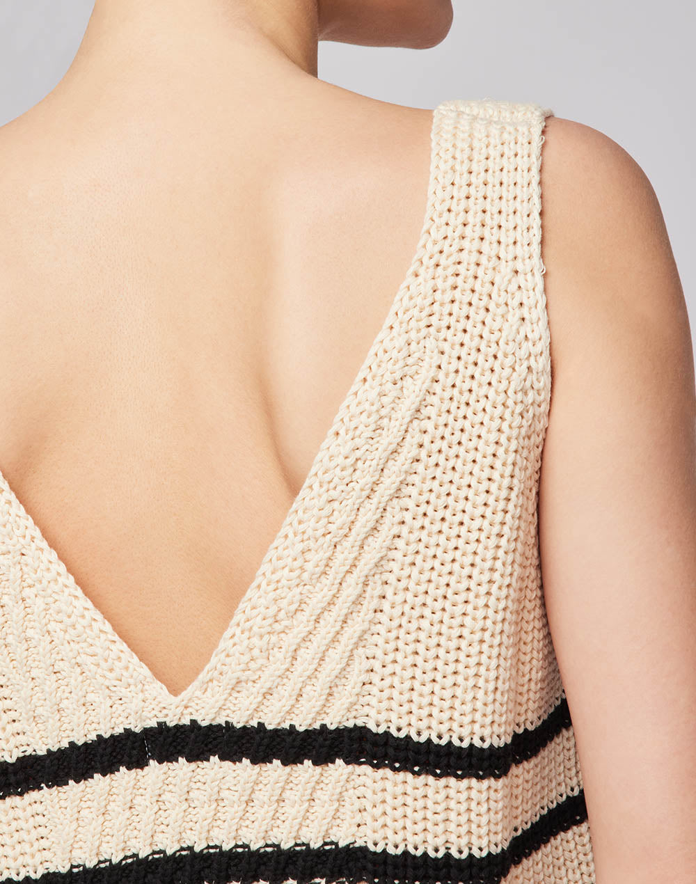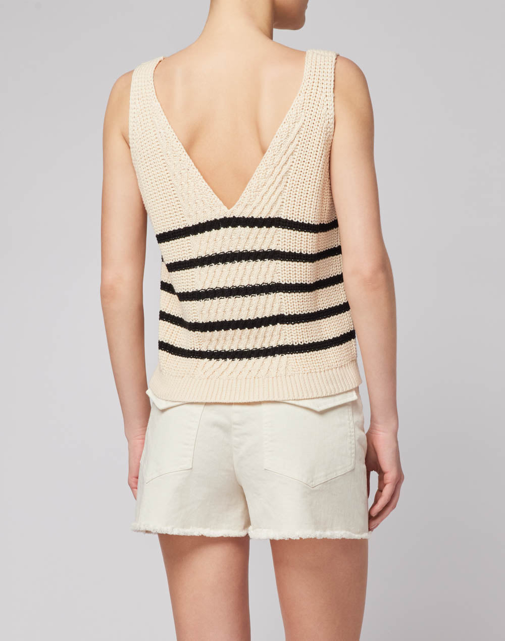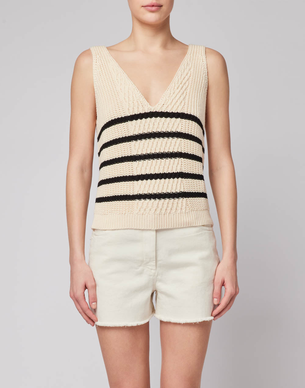 Débardeur en maille rayée à porter sous le cardigan assorti.