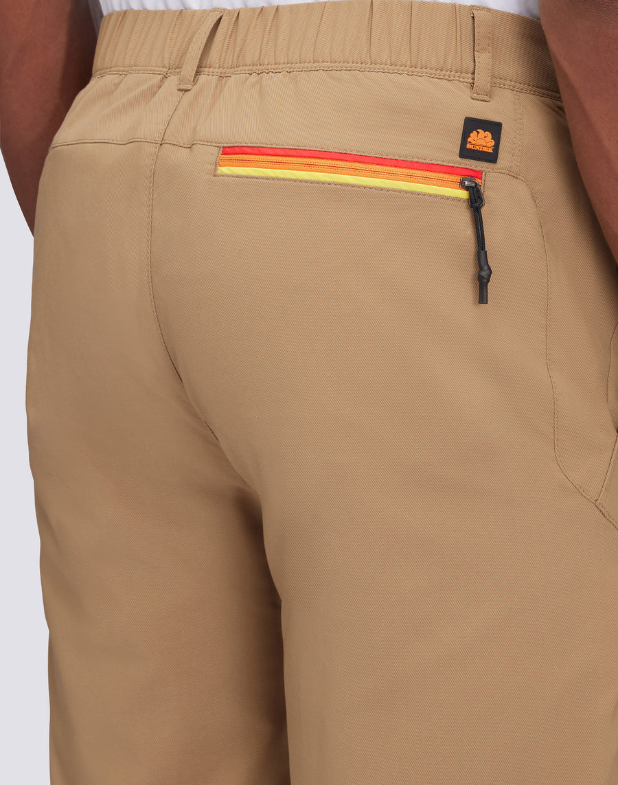 Pantalon long pour homme en tissu sergé polyester à séchage rapide. Hybride semi-extensible, il s'agit d'un vêtement au caractère sportif et à la connotation plus technique que les autres modèles de pantalons pour hommes Sundek.