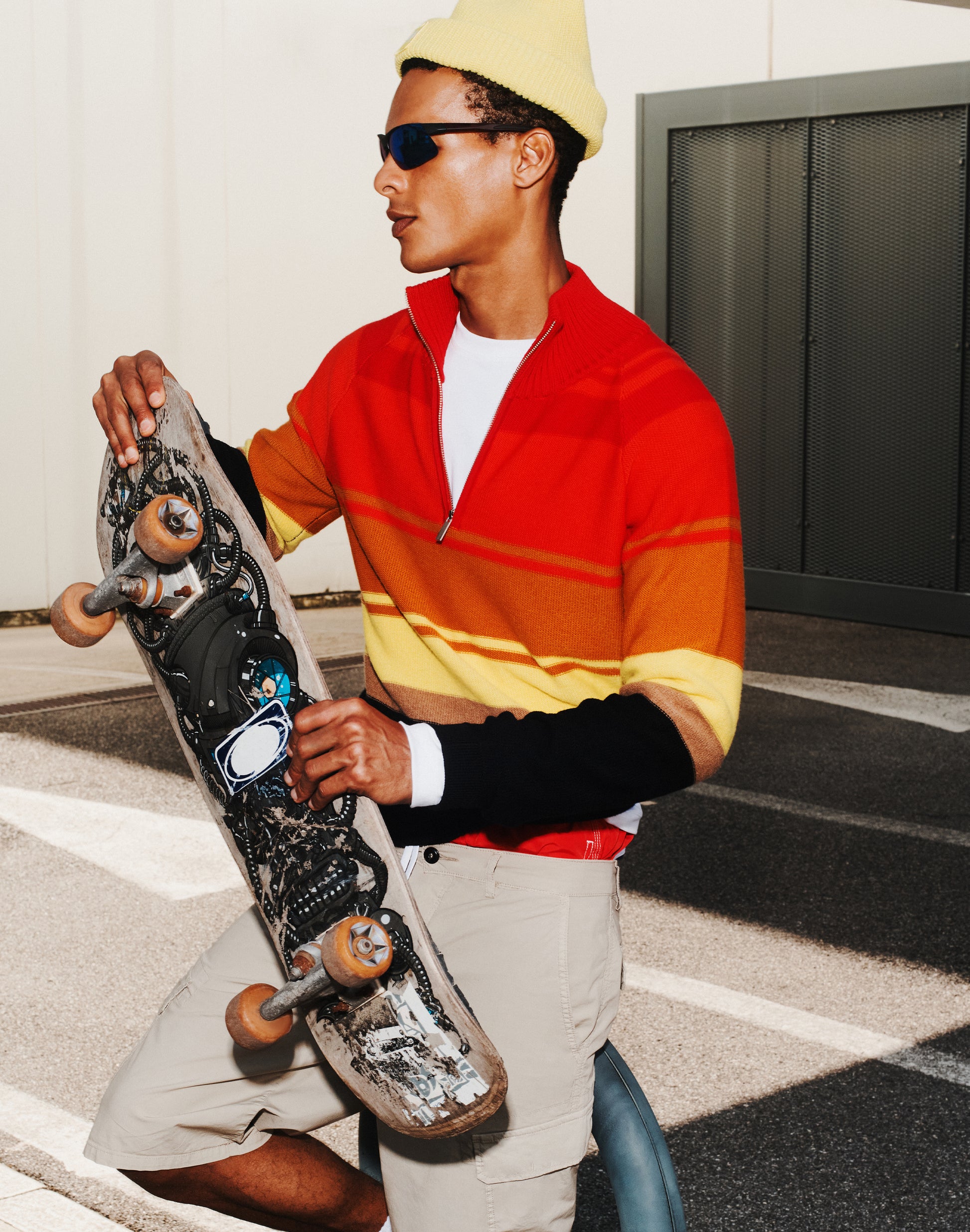 PULL HOMME À COL MONTANT AVEC FERMETURE ÉCLAIR 3/4 ET RAYURES HÉRITAGE
